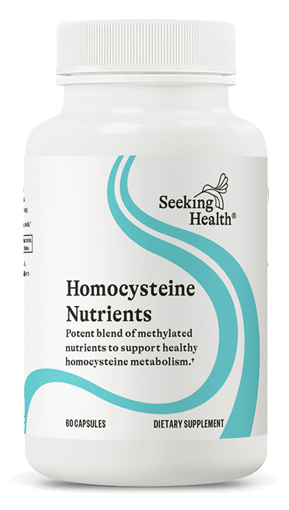 HomocysteX Plus by Seeking Health supplies bioactive forms of four essential Bvitamins together with betaine (also known as trimethylglycine or TMG) to synergistically support methylation processes and normal homocysteine metabolism. The body's methylation process is vital for formation of essential cell components such as proteins, nucleic acids found in DNA and RNA, and phospholipids that form nerve cell membranes. By transferring methyl groups (three hydrogen atoms bonded to a carbon atom, known as CH3) from one molecule to another, methylation turns on genes, activates enzymes, drives detoxification reactions, influences hormone secretion, and helps maintain normal metabolism of homocysteine, a potentially harmful amino acid metabolite. Unfortunately, poor nutrition, oxidative stress and various other factors can impair methylation processes throughout the body.*